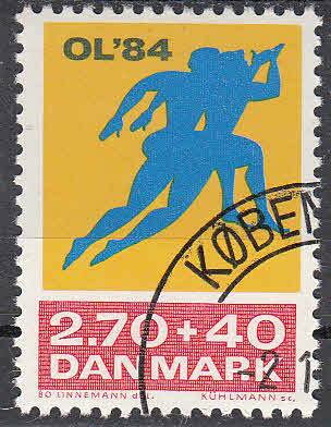 AFA 798æ 2,70+0,40 kr Olympiske Lege 1984, variant "Søm" gennem tommelfingeren, nr. 19 i arket. Meget undervurderet i AFA!!!